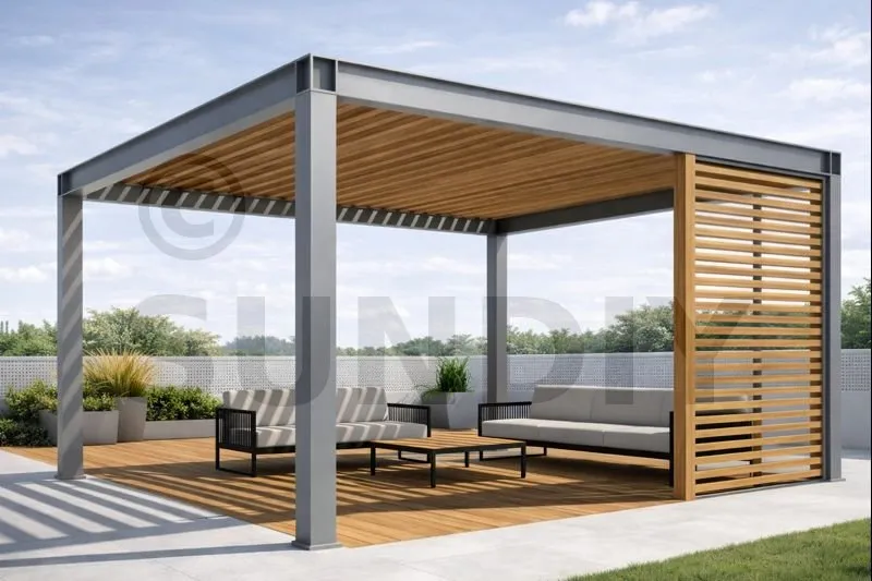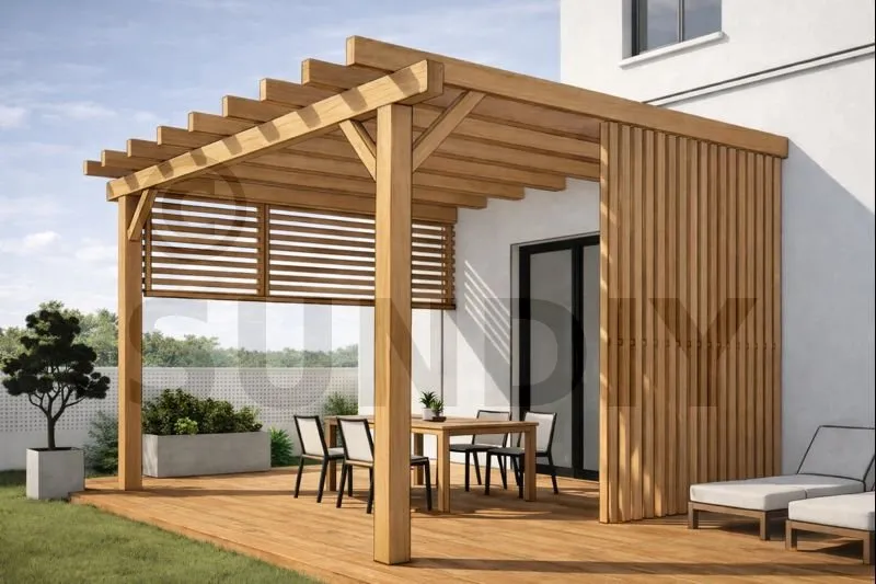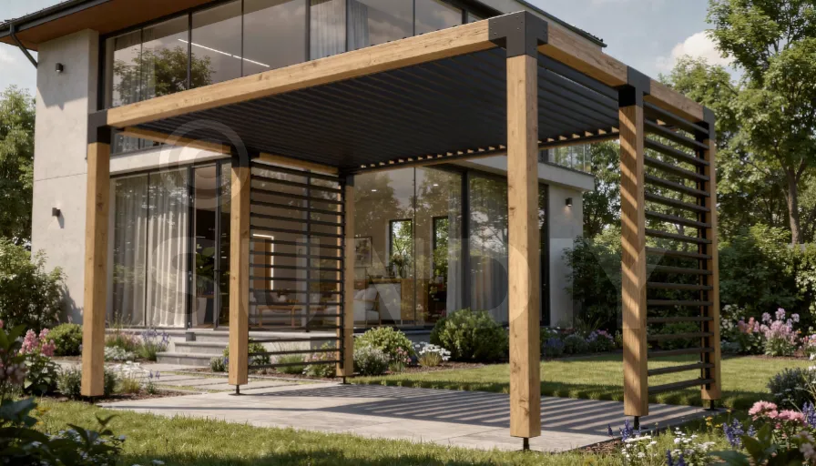 Le vent et le vis-à-vis influencent directement le style, car ils conduisent souvent à ajouter des éléments de protection visibles. Pour le soleil rasant et l’éblouissement, on privilégie plutôt des brise-soleil latéraux, qui filtrent la lumière sans fermer complètement l’espace. Pour le confort au quotidien dans une zone exposée, on ajoute plutôt des brise-vent, qui cassent la rafale et créent une zone plus calme sous la pergola. Ces ajouts transforment la pergola, car elle devient progressivement une pièce extérieure plus protégée.