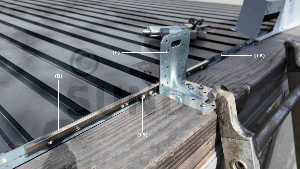 Mettre en place la barre de renfort (B) sur les tringles (TR) et repérer les deux trous de solidarisation (TS) afin de positionner les pièces de liaison de chaque côté.
