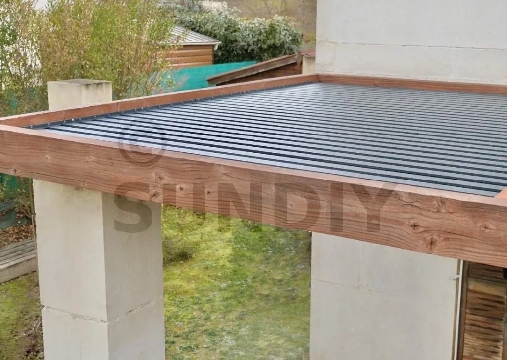 Notre kit de lames orientables SUNDIY est entièrement personnalisable, permettant la création d’une pergola bioclimatique sur mesure répondant parfaitement à vos attentes. Avec un choix de lames aux couleurs variées et de différents matériaux, vous avez la possibilité de choisir entre la chaleur du bois ou la modernité de l’aluminium, voire même de les combiner !