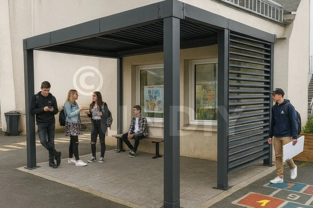 Parce que l’aluminium thermolaqué SUNDIY associé à une section de lame renforcée et à des fixations robustes, offre une résistance mécanique élevée : il supporte les sollicitations d’un public jeune, les chocs répétés, les manipulations brusques et les contraintes du quotidien scolaire, tout en résistant aux UV et à la corrosion.