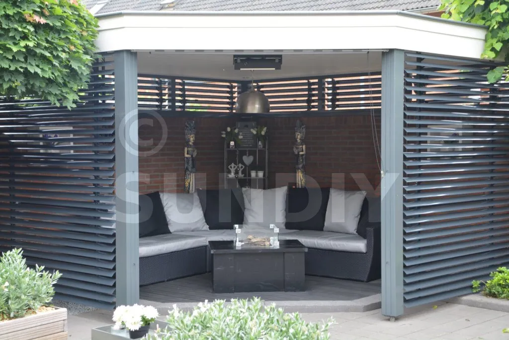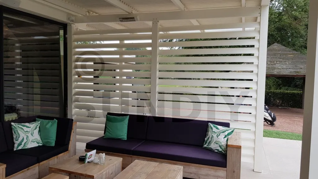 Les murs à persiennes et les écrans à persiennes sont les deux faces d’une même pièce que vous souhaitiez accroître votre intimité ou protéger des équipements moins attrayants. Vous atteignez cet objectif avec des cloisons à lattes. Les lames offrent une grande flexibilité. Vous pouvez facilement régler les persiennes dans la position souhaitée. Celles-ci peuvent être pratiquement variables de 0° (complètement fermé) à 90° (complètement ouvert).