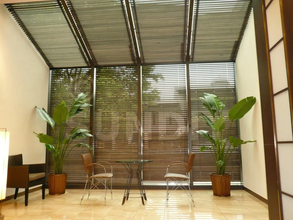 Sunshield propose une vaste gamme de persiennes en aluminium et en bois. Les persiennes en aluminium sont disponibles dans une large gamme de couleurs. Vous pouvez choisir parmi les couleurs de revêtement en poudre et les couleurs d’anodisation. Les plus courantes sont disponibles en stock. Des coloris et traitements spéciaux, comme texturés par exemple, sont disponibles sur demande. Les lames en bois sont généralement fabriquées à partir de Western Red Cedar. Les persiennes en bois sont disponibles avec plusieurs traitements et dans différentes couleurs.