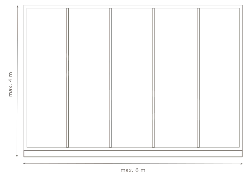 Le toit à persiennes Horizon mesure 5,5 mètres de large et 3,6 mètres de profondeur. Ce sont les dimensions standards. Si vous avez d’autres dimensions en tête, veuillez contacter un conseiller Sunshield.