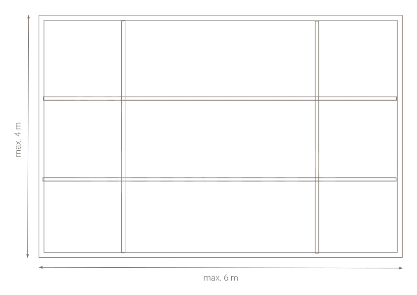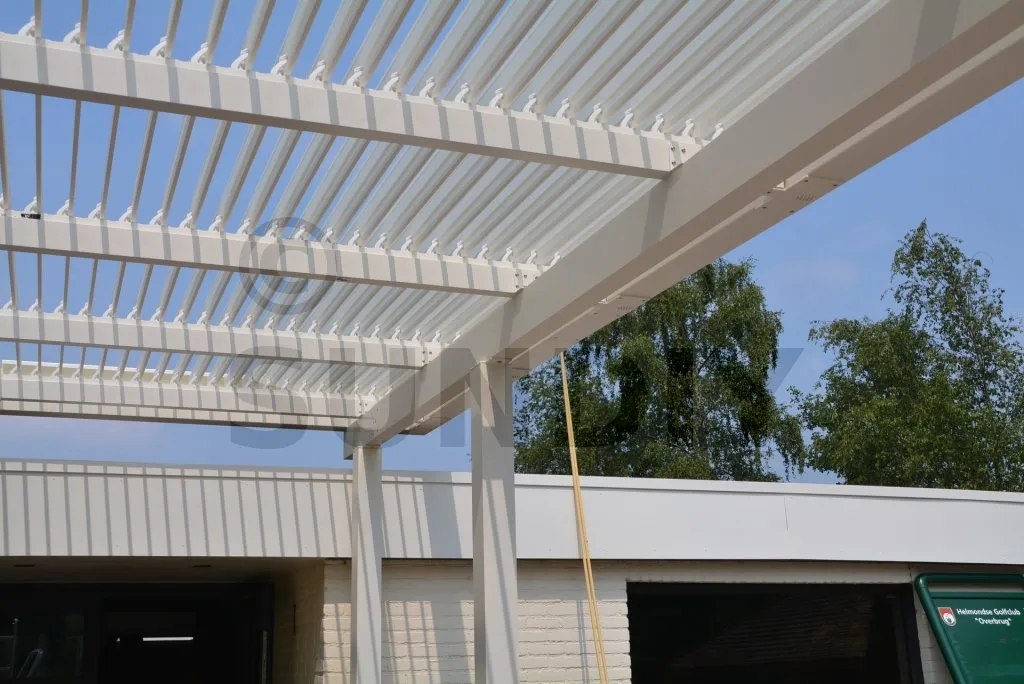 Le toit à persiennes Sunshield Infinity est construit à partir de modules de 6 mètres de large et 4 mètres de profondeur. L’Infinity est développé pour les grandes terrasses. Il s’agit de combiner plusieurs modules en un seul toit.
