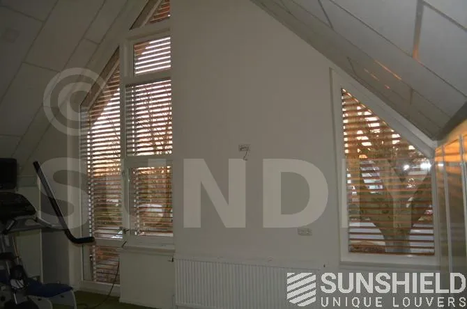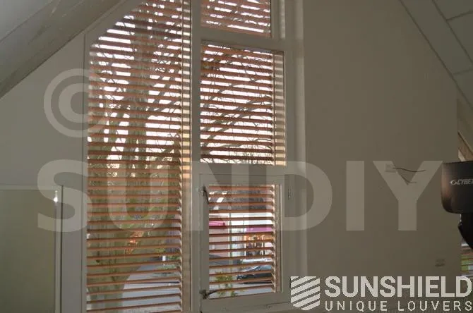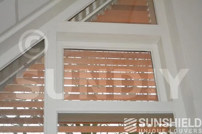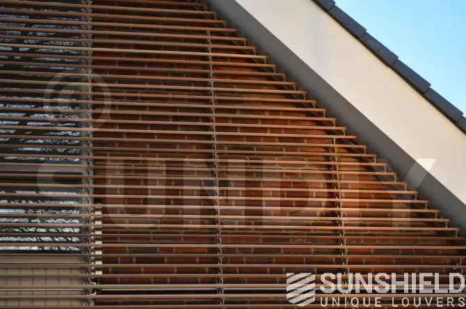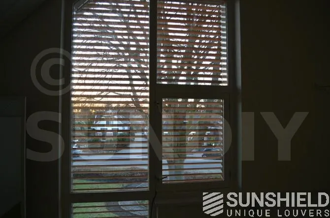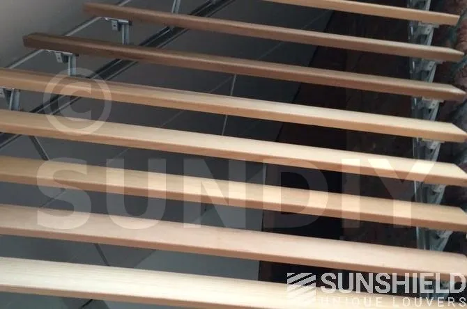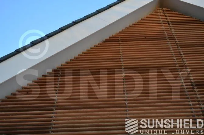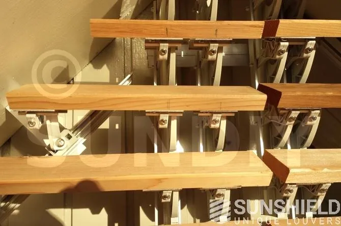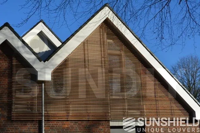 Plusieurs brise-soleil ont été conçus pour le centre de santé avec la persienne en bois 68W. Pour les façades, un petit triangle et un grand triangle-trapèze ont été créés.