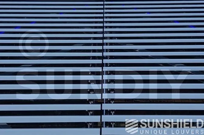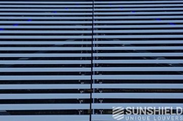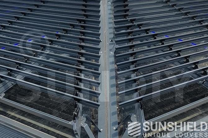 Pour cette protection solaire, le choix s’est porté sur la lame 145-E . Une lame avec une face avant sphérique et une largeur de 145 mm. Tous les composants en aluminium sont revêtus de RAL 7016. Également appelé gris anthracite. Les pièces en plastique sont noires.