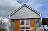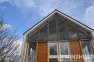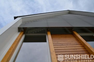 Ce projet a été réalisé avec des persiennes 145-E sur la face avant et la face arrière de cette maison de campagne moderne. Le traitement de surface est anodisé naturel.