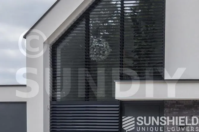 En choisissant deux moteurs, les deux systèmes de lames peuvent être commandés indépendamment l’un de l’autre. Dans ce cas, avec une télécommande qui permet aux résidents d’ouvrir et de fermer les pièces individuellement ou simultanément.