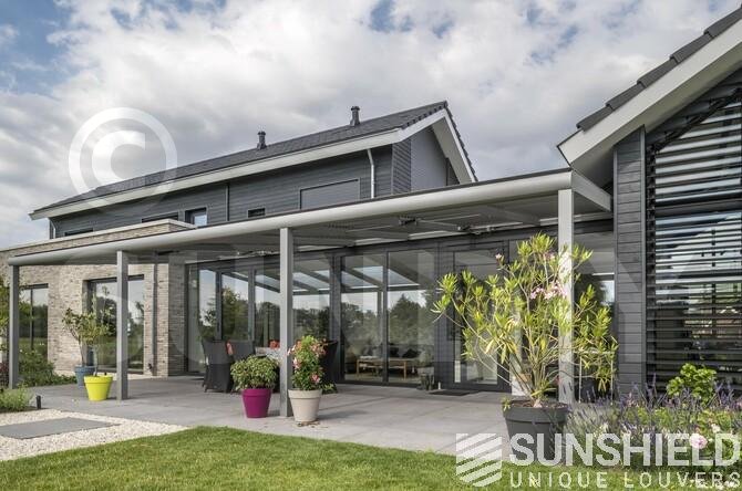 Ce qui lie les systèmes de persiennes entre eux, c’est la finition. Toutes les pièces en aluminium sont en RAL 7021, gris noir. Et ce, dans un niveau de brillance mat et associé à une structure fine. Il s’agit d’un relief visible et tangible qui renforce encore l’aspect exclusif.