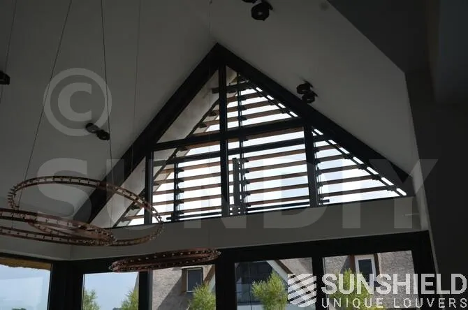 Le système de volets triangulaires couvre une surface de plus de 3 m². Ils s’ouvrent et se ferment à l’aide d’une télécommande et peuvent être réglés en continu dans n’importe quelle position intermédiaire souhaitée.