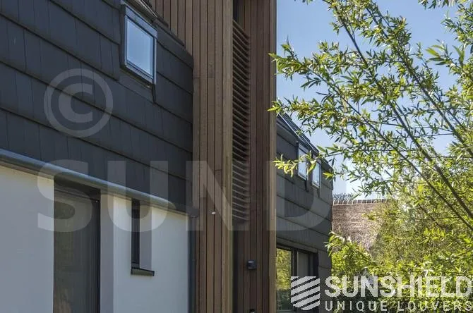 Les résidents ont choisi la persienne 94-W. Une latte en bois d’une largeur de 94 cm. Le Western Red Cedar a été choisi pour le 94-W, le bois le plus populaire pour les persiennes en bois.