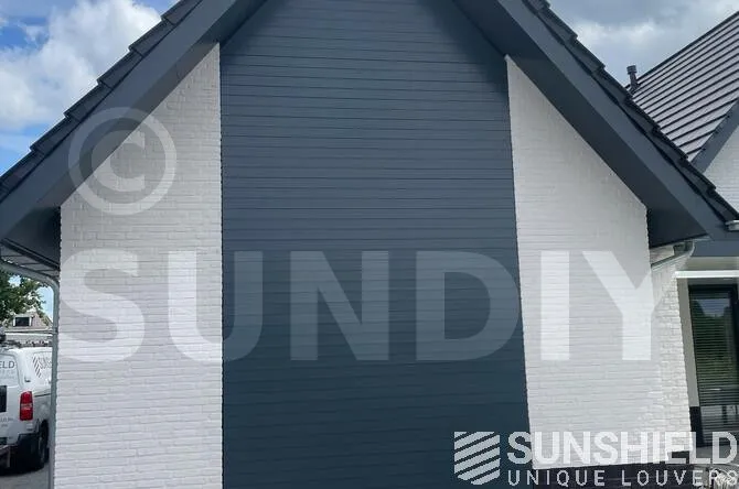 Tous les composants en aluminium, tels que les lattes et les supports, ainsi que les cadres et les porte-à-faux, sont revêtus de RAL 7106. Le degré de brillance est de 30 %, ce qui donne à la couleur gris anthracite un aspect mat.