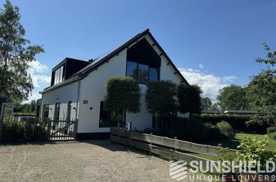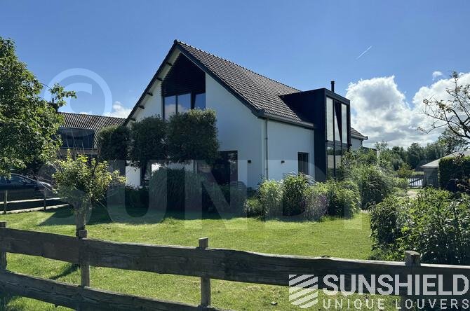 Les résidents ont opté pour la persienne 96-E. Il s’agit d’une lame d’une largeur de 96 mm. La visibilité entre les lames, lorsqu’elles sont entièrement ouvertes, est de 90 mm. Donc beaucoup de lumière du jour et une vue dégagée.