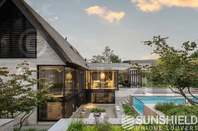 Le 155-E est la persienne de choix ici. La largeur de cette lame est de 155 mm et la taille du pas de 140 mm. Lorsque les lames sont complètement ouvertes, il y a une vue de 14 cm entre les lamelles, ce qui laisse suffisamment de place à la lumière du jour et à la vue.