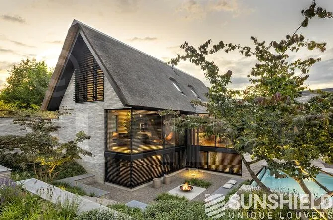 Les persiennes de forme rectangulaire/triangle de la façade avant sont placées dans un angle fixe lors de l’installation.