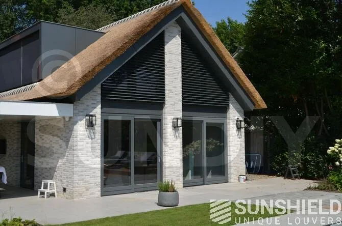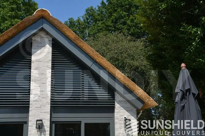 Les riverains ont opté pour la lame 96-E. Cette persienne a une largeur de 96 mm. Lorsque les lamelles sont complètement ouvertes, la visibilité entre les persiennes est de 9 cm.