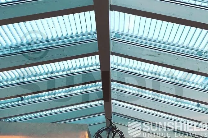 Ce projet a été réalisé en collaboration avec Merlo, l’un des partenaires commerciaux de Sunshield. Merlo a sélectionné la grille 75E pour ces lanterneaux. Les pièces en aluminium sont peintes en RAL 9010 - blanc pur. Les clips sont également blancs.