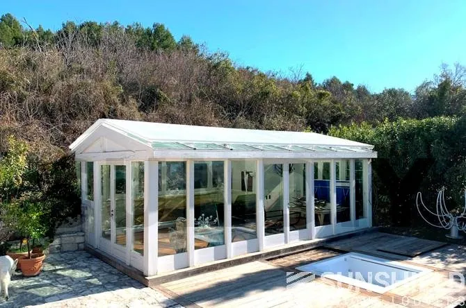 Les persiennes couvrent une surface de près de 42 m². En raison de la position de la maison de jardin face au soleil, les deux côtés du toit ont le même sens de fermeture.