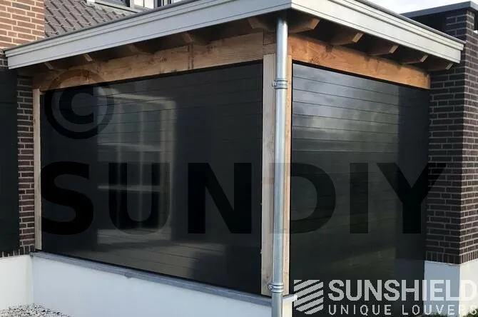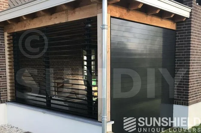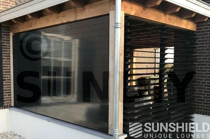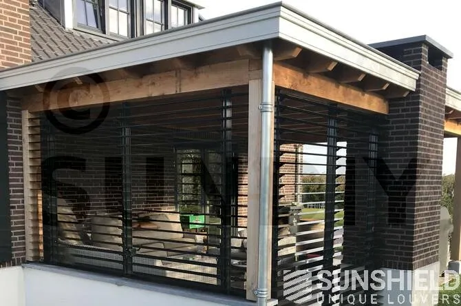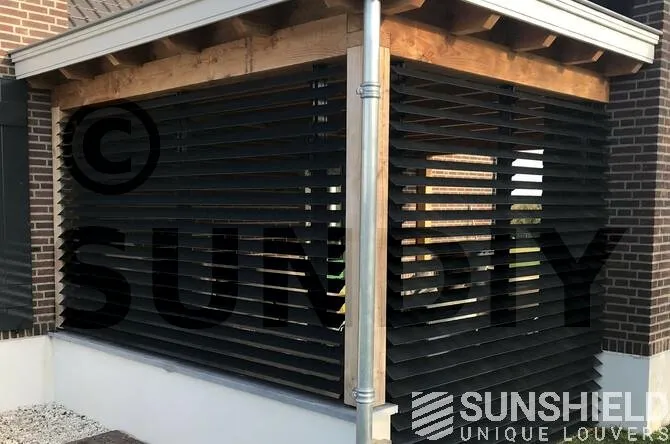 Pour ces murs, les habitants ont opté pour la persienne 96-E. La 96-E est une lame en aluminium qui offre une vue magnifique entre des lames ouvertes de 9 cm.