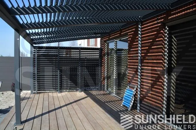 Lorsque les persiennes sont fermées, le toit à persiennes est bien sûr étanche. Sur les côtés, les persiennes 96-E peuvent être actionnées manuellement.