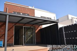 La colonne centrale est positionnée au milieu du mur de la maison. Les 2 compartiments peuvent être réglés individuellement dans la position de persiennes souhaitée.