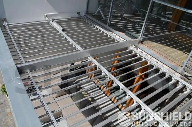 Et pour éviter que vous ne puissiez voir le système depuis votre siège sous le toit à lattes, celui-ci a été placé à l’envers sur demande. La construction en acier le permet.