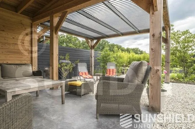 Le toit Atlantis mesure 4100 mm de large et 3600 mm de profondeur, avec un moteur élégamment placé au centre. Grâce à une télécommande, le client peut régler en continu la quantité de lumière solaire entrant.