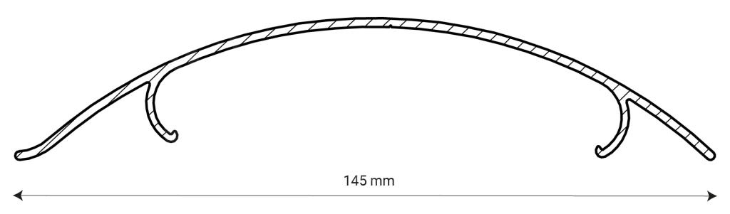 La façade, le côté visible de la persienne 145-E, a une forme convexe et arrondie. L’arrière de la lame est conçu pour une fixation optimale du clip qui maintient la latte. La conception de l’arrière d’une persienne découle de la fonction et de la forme de la façade.