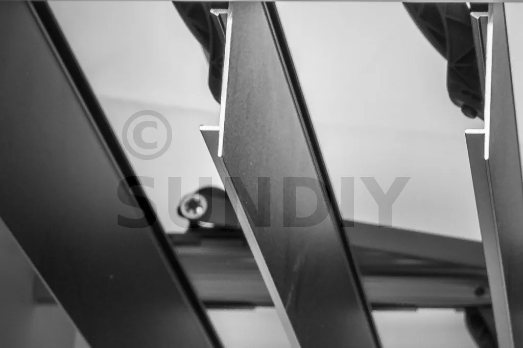 Pour les persiennes Sunshield 107-E, les lamelles sont ajustables et peuvent être positionnées à n’importe quel angle entre 0 et 90 degrés. Les systèmes de protection solaire et les stores peuvent être installés horizontalement, verticalement, en pente ou inversés.