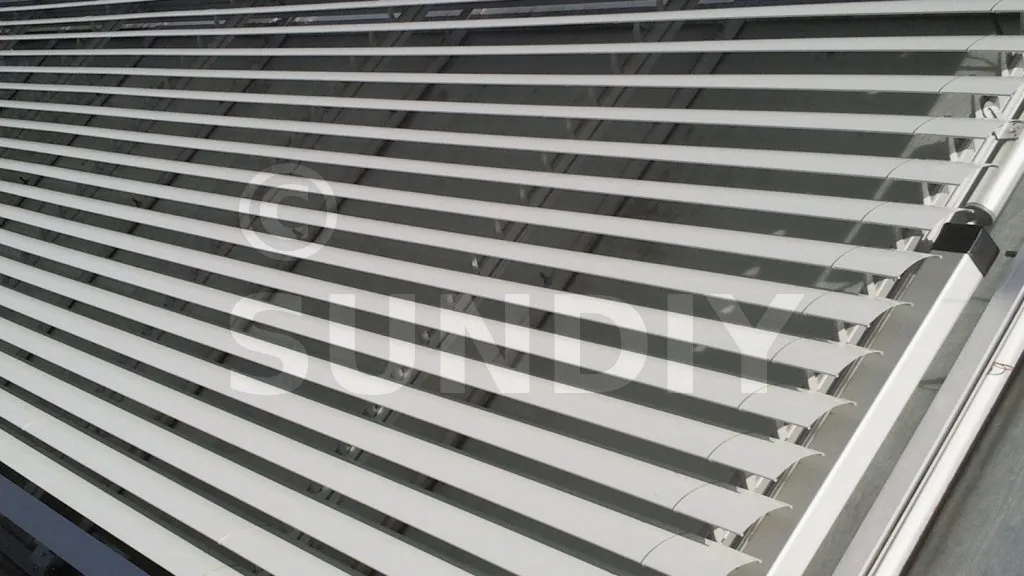 Pour les persiennes Sunshield 80-R, les lames sont mobiles et peuvent être placées dans n’importe quelle position entre 0 et 90 degrés. Les systèmes de persiennes pare-soleil, les stores peuvent être installés horizontalement, verticalement, dans n’importe quelle pente souhaitée et à l’envers.