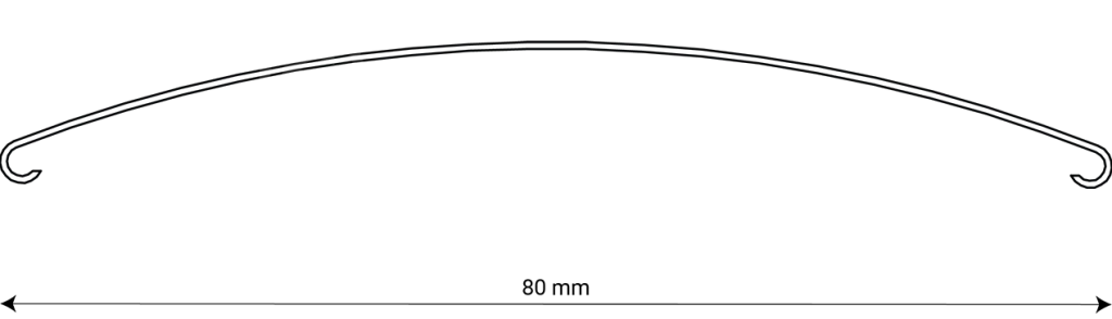 La façade, le côté visible, de la persienne 80-R a une forme convexe et arrondie. L’arrière de la lame est optimisée pour une fixation rapide du clip de latte qui maintient la lame. La conception de la face arrière de la persienne suit la forme de la face avant.