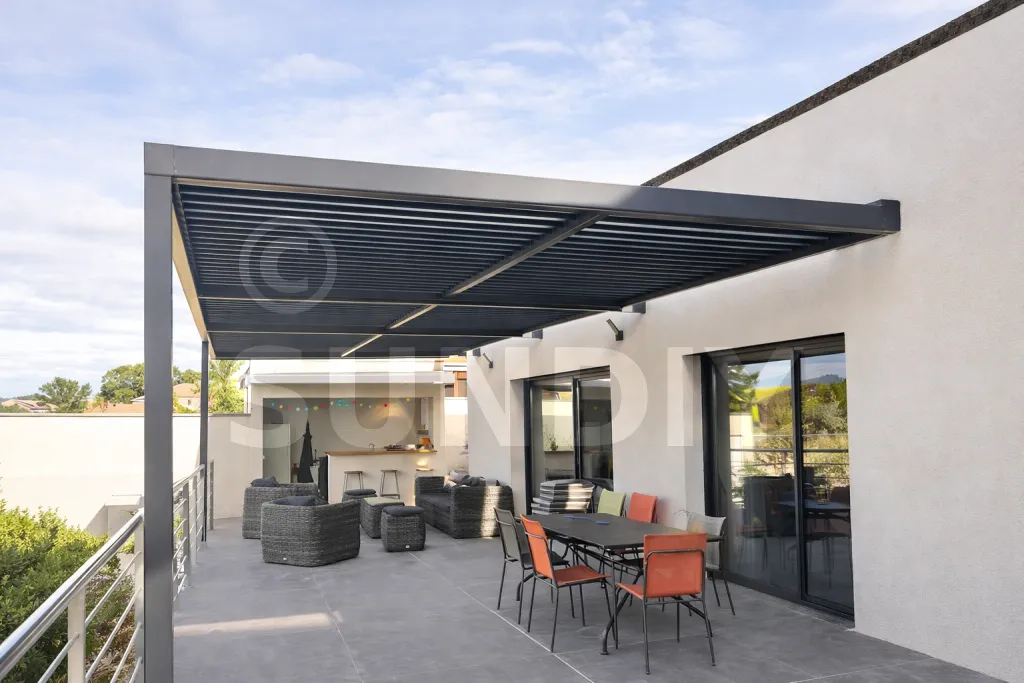 Avec une pergola équipée de lames orientables SUNDIY, l’orientation devient plus souple que sur une pergola fixe.