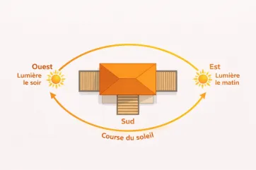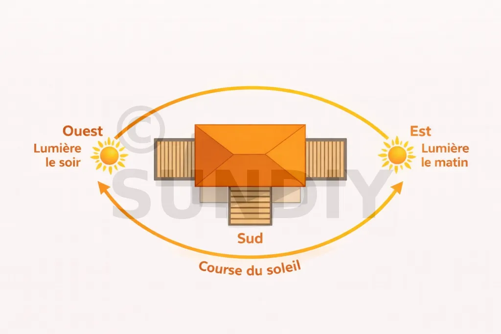 Une orientation très agréable en fin de journée, mais attention au soleil rasant en été, souvent plus difficile à maîtriser sans lames orientables.