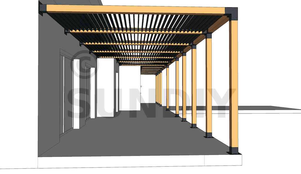 - Poteaux en bois de 12x12 lamellé-collé.