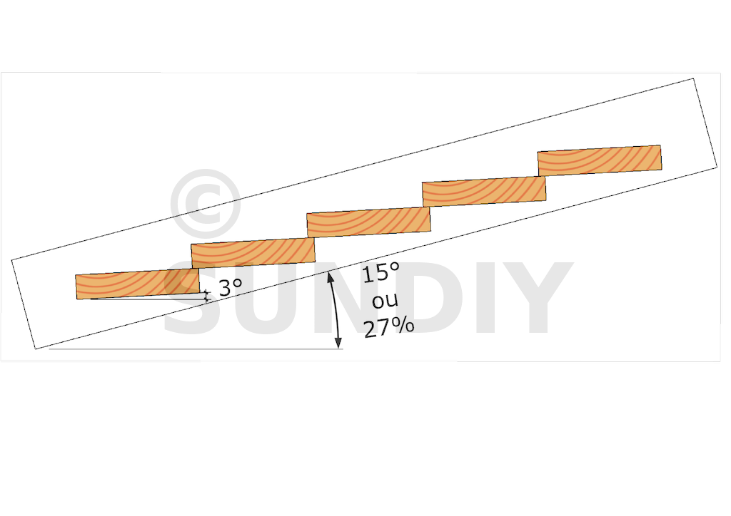 - Dans le sens transversal - perpendiculairement aux lames - la pente n’est pas nécessaire.